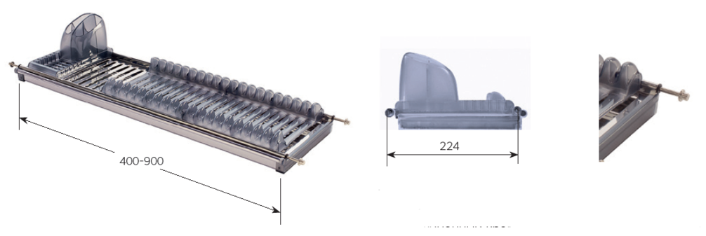 Исполнение: Комплектация: cушка с выдвижным поддоном из нержавеющей стали, подпружиненный крепеж, пластиковая подставка для тарелок, пластиковая подставка для столовых приборов, пластиковая подставка для чашек.