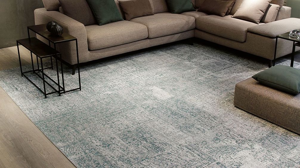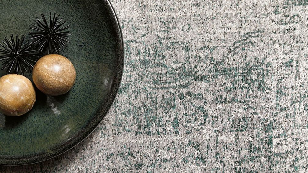 "Victor для гостиной и спальни. Мягкий на ощупь ковер очаровывает своим орнаментом в стиле пэчворк с винтажным эффектом. "