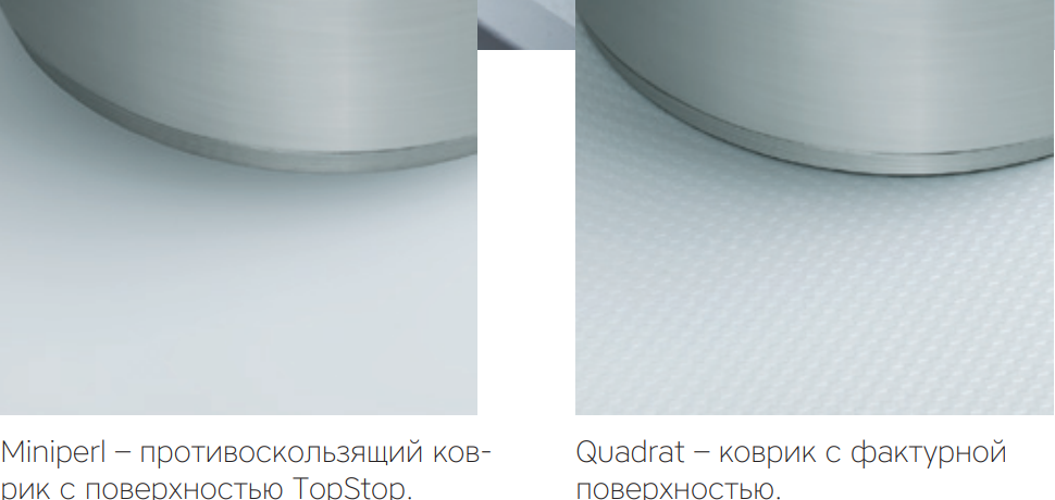 Коврики из плотного пластика. Высококачественный пластик обеспечивает прекрасный внешний вид на долгие годы. Не сминается при открывании/закрывании. Легкий уход – можно мыть в посудомоечной машине.