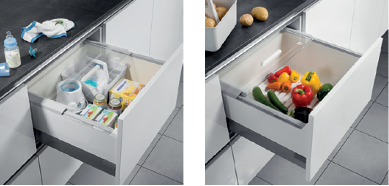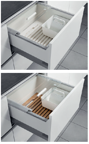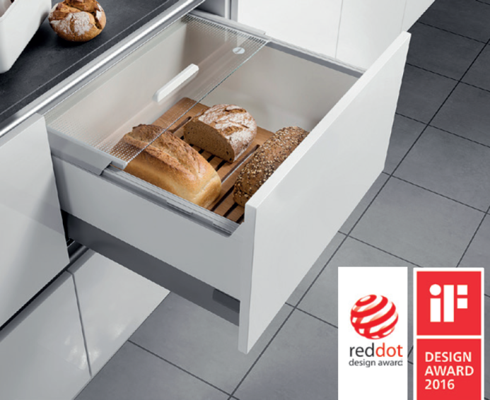 Многофункциональная система хранения для шкафа шириной 600мм. Красивый ящик со скользящей стеклянной крышкой можно использовать в качестве хлебницы и не только. Комплектуется деревянной — для хлеба и пластиковой — для овощей, решеткой, а также удобным контейнером для переноски. Гигиеничный высококачественный пластик легок в уходе. Крышка выполнена из безопасного закаленного стекла.