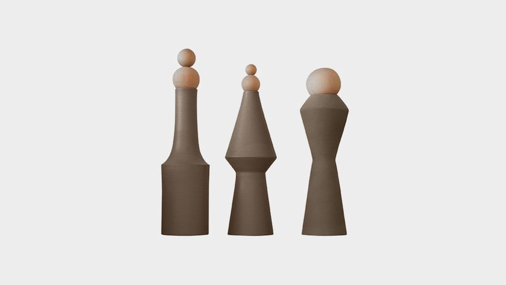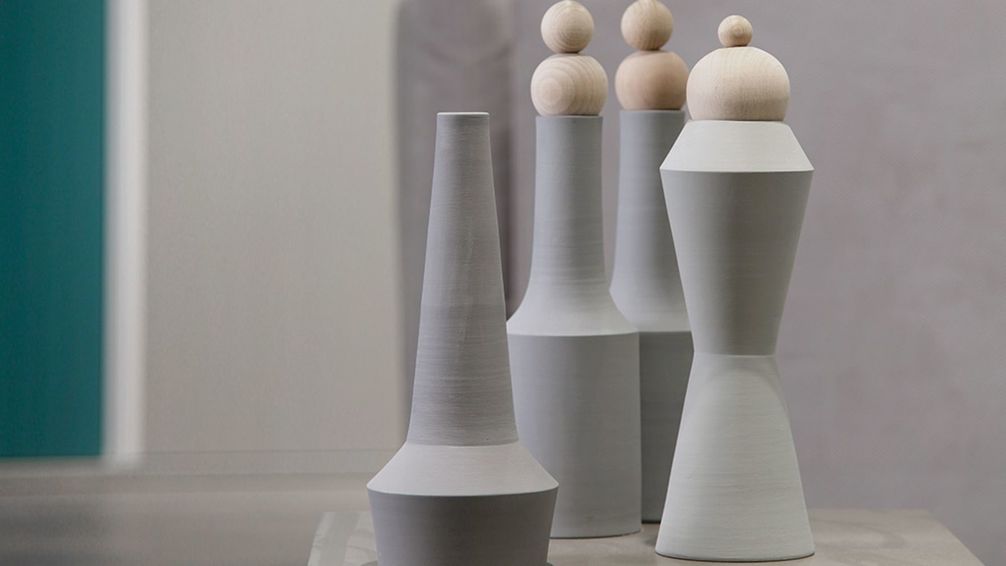Комплект из 3 декоративных бутылок Teddy из керамики ручной работы с окраской холодным методом. Разные цвета и размеры. Сферическая крышка из дерева. Материал: Керамика. Размер H. 23cm. x ø 9cm.
