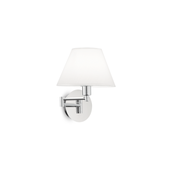 Арматура из металла покрытого матовой латунью или хромированной. Подвижный рожок регулируемый. Рассеиватель из материала ПВХ покрыт тканью.