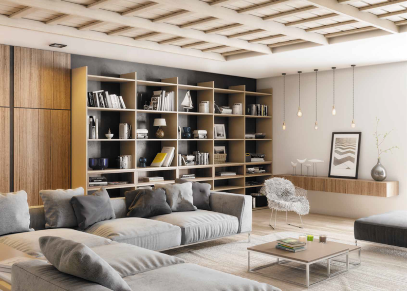 Гостиная, представленная в отделке из натурального шпона. Панели и фасады отделаны натуральным шпоном из ценных пород дерева, а так же есть тонированные 3D шпоны. По желанию заказчика лакировка может быть матовой или глянцевой. Модель Albero даст дизайнеру возможность воплотить любую свою задумку благодаря гибкой сетке нестандартных размеров.