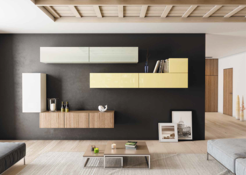 Гостиная, представленная в отделке из натурального шпона. Панели и фасады отделаны натуральным шпоном из ценных пород дерева, а так же есть тонированные 3D шпоны. По желанию заказчика лакировка может быть матовой или глянцевой. Модель Albero даст дизайнеру возможность воплотить любую свою задумку благодаря гибкой сетке нестандартных размеров.