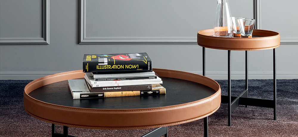 Металлический столик с круглой деревянной столешницей и выступающими краями обитыми в мягкой регенерированной коже. Это новая коллекция столиков, элегантная простота которых возвышается благодаря гармоничной эстетике, превращая ее в частную личную сферу – виртуальную защитную арену, в которой можно отдохнуть от давления дня.