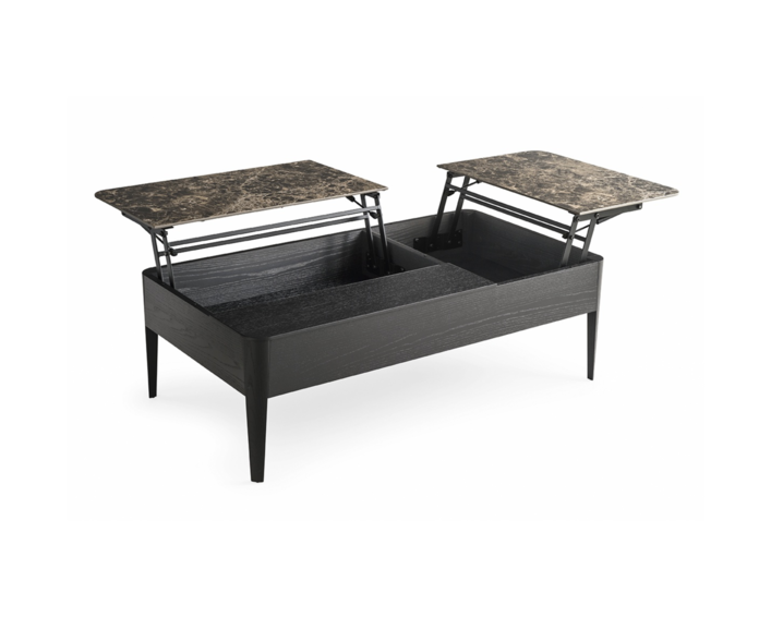 Деревянный журнальный столик с фиксированным верхом и двумя керамическими подвижными панелями. В дополнение к удобной столешнице, журнальный столик AROUND оснащен элегантными керамическими панелями, которые можно поднимать и выдвигать, открывая место для хранения ценных вещей. Также он может использоваться в качестве рабочей или столовой поверхности.