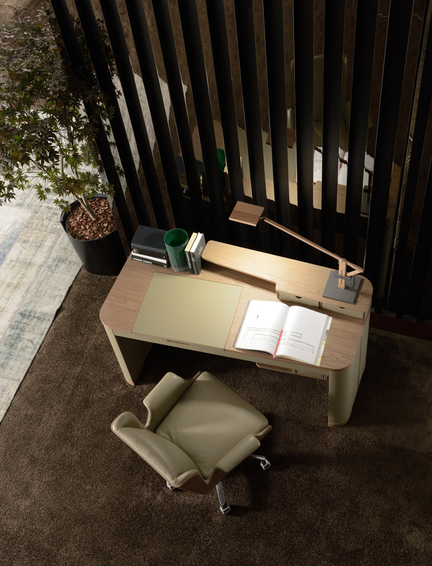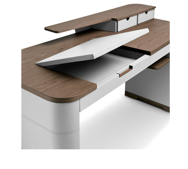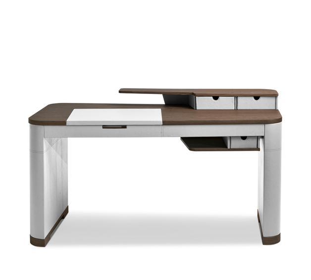 Новый письменный стол – это изысканный и функциональный предмет обстановки, который увеличивает пространство, создавая теплую и приветливую атмосферу утончённого и сверхсовременного стиля. Благодаря своей универсальной структуре Artur идеально вписывается в любой интерьер в доме, от гостиной до спальни, от кабинета до прихожей. Элегантный дизайн, характеризующийся ассиметичными линиями, сочетается с использованием ценных материалов, таких как дерево и кожа, которые тщательно и умело были применены в деталях, в частности, в съёмной полке на столешнице. Изысканность форм и отделки делают Artur предметом инновационного и в то же время исключительного решения. Письменный стол доступен только в одной версии и размере, реализован из чёрного ореха и кожи; две полки: верхняя и нижняя, оборудованы ящичками, обитые кожей