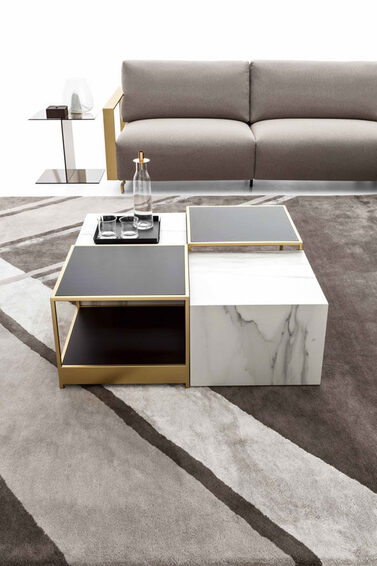 Bag дополняет серия столиков и кубов из керамогранита, которые прекрасно сочетаются с мягкими модульными компонентами.