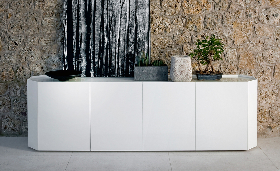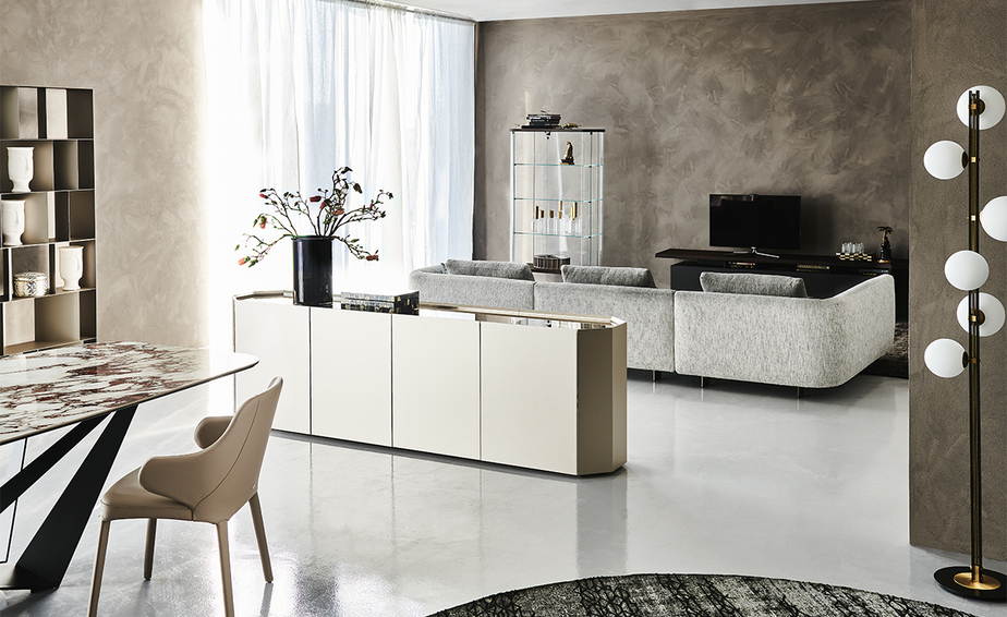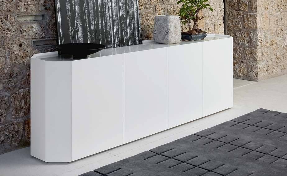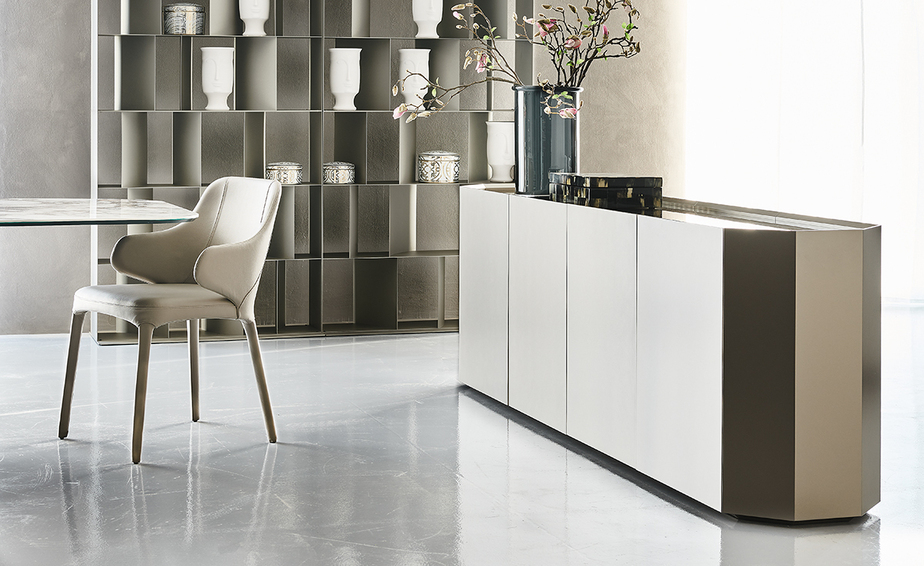 Скульптурный и геометрический современный буфет Chelsea , разработанный Алессио Бассаном, гармонично вписывается в стиль гостиной, как в жилых, так и в контрактных проектах дизайна интерьера.