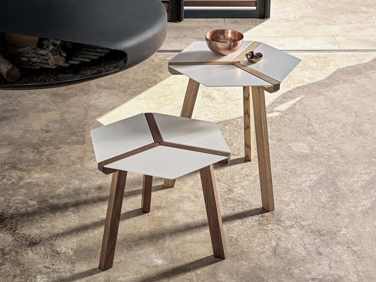 Журнальный столик с каркасом из массива дерева и столешницей из лакированной стали. Доступен в прямоугольной форме и в размере: 54х48х43 54х48х56