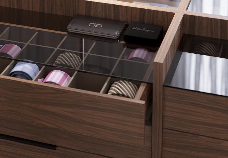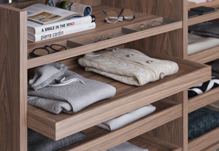 Программа построения гардеробных АТЛАС-ЛЮКС разработана с максимальной вариативностью и открывает творческий простор для построения, который нужен именно Вам. Разнообразие отделочных материалов и вариантов композиций позволяет создавать неординарные решения для любого интерьера и стилистического направления. Множество элементов внутреннего наполнения позволяют разумно организовать пространство, удобно расположив весь ваш гардероб. Для отделки гардеробных из современной коллекции АТЛАС-ЛЮКС применяется более 20 видов натурального шпона, 7 из которых из экзотической древесины – это материал из тропических пород дерева, отличающийся необычной фактурой, оригинальной цветовой гаммой, богатой текстурой и неповторимыми узорами. Для обеспечения эффекта целостной поверхности компания АТЛАС-ЛЮКС предлагает уникальное на рынке России решение – подбор рисунка шпона. В зависимости от требуемого визуального эффекта рисунок шпона подбирается вручную на фабрике. Для финишной отделки шпон можно затонировать или оставить в исходном природном оттенке, после чего покрыть матовым или глянцевым лаком.
