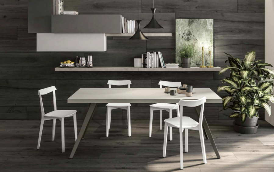 Ginepro - представляет собой фиксированный стол, доступный в четырех размерах, опираясь на четыре серых или белых металлических ножках.