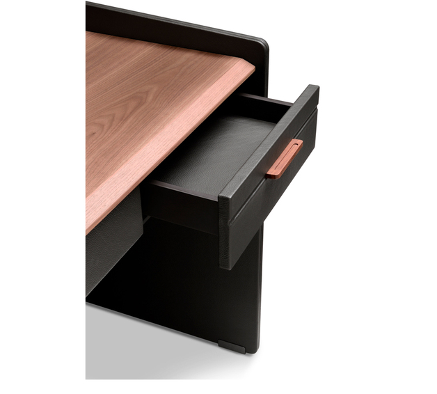 «Состоит из кровати, комода, прикроватных тумбочек и тщеславия ночной коллекции Jean-Marie, которая фокусируется на драгоценности седельной кожи и кожи и заботе о мастерстве», — говорит архитектор Умберто Аснаго, рассказывая о новых продуктах, разработанных для i 4. Комод и туалетный столик, с другой стороны, имеют каркас из формованной фанеры тополя, полностью обтянутый кожей или седельной кожей, а сверху — мрамор или черный орех, окрашенный в серый цвет.