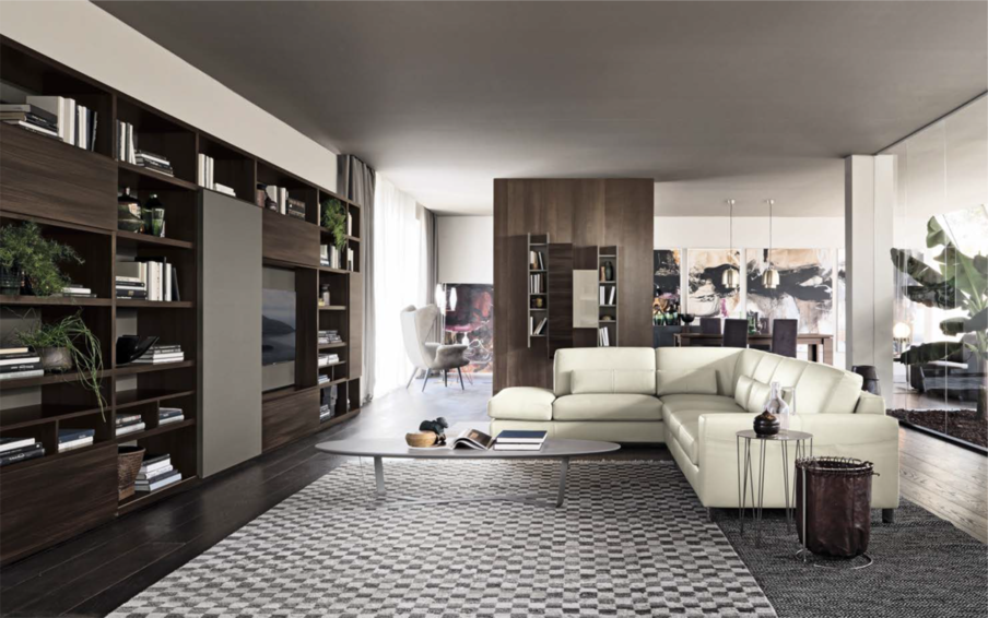 Современная модульная стенка для домашней библиотеки от Febal порадует Вас своей функциональностью. Большое количество разнообразных модулей, укомплектованных откидными, скользящими или распашными дверьми по Вашему желанию, богатая палитра декоров и оттенков для корпуса и фасадов (более 25 цветов с матовым или глянцевым покрытием), позволят собрать композицию по необходимым размерам.