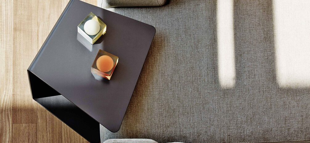 Серия аксессуаров, созданная для диванов Loman и Bijoux, включает стеллаж, полки и журнальный столик из окрашенной листовой стали