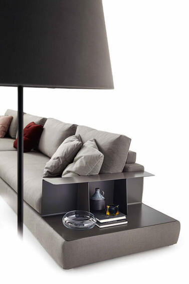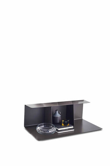 Серия аксессуаров, созданная для диванов Loman и Bijoux, включает стеллаж, полки и журнальный столик из окрашенной листовой стали.