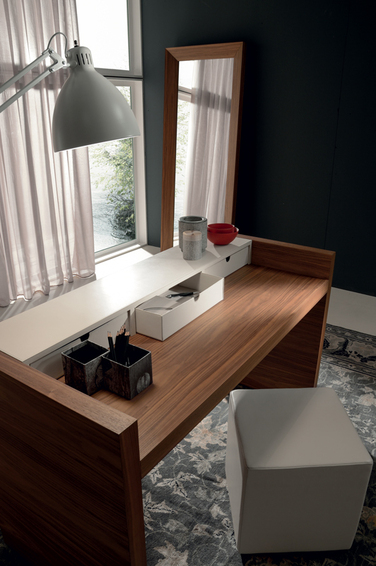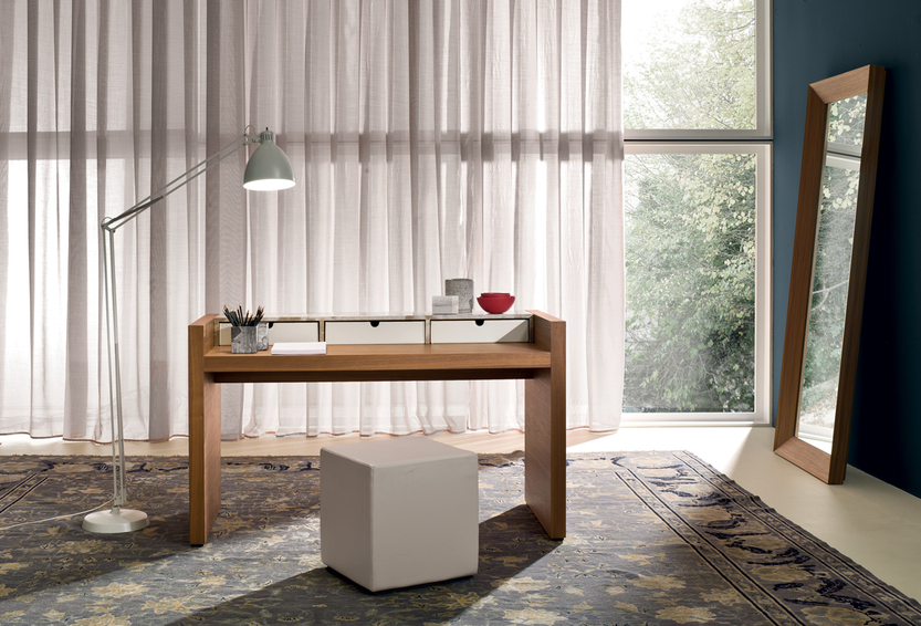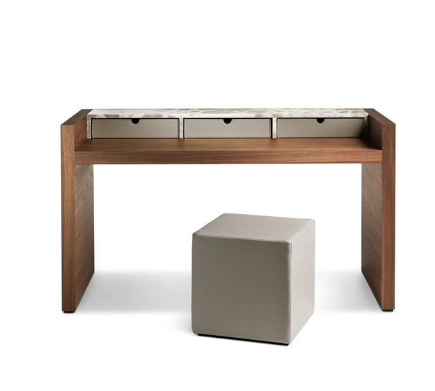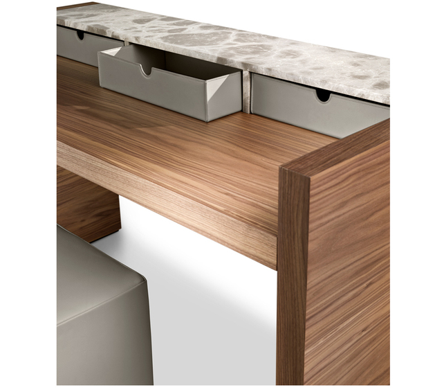 Эта коллекция намеренно характеризуется чистыми линиями и простыми объемами. Она выполнена из сверхсовременных материалов с использованием новейших процессов и включает в себя серию мебели (шкаф для посуды, письменный стол с конторкой и зеркало) из массива черного ореха с матовым покрытием «воскового эффекта», которая передает богатство и особую элегантность как визуально, так и на ощупь. Мрамор Монако Лайт с матовой полировкой на свету создает уникальный фактурный и трехмерный эффект. Письменный стол дополнен мраморными вставками и ящичками из кожи. Наконец, большое настенное зеркало с типично ассиметричным дизайном характеризуется острыми углами, создающими особое ощущение перспективы.