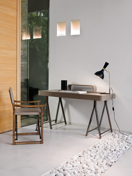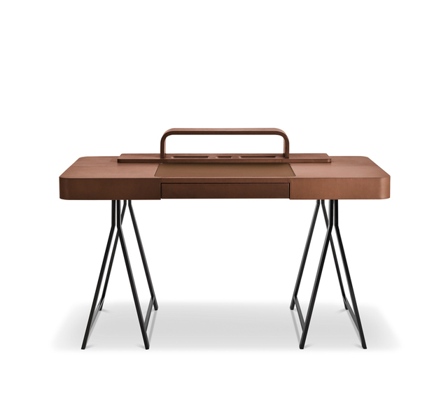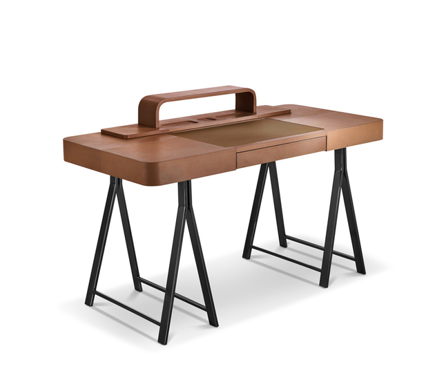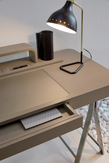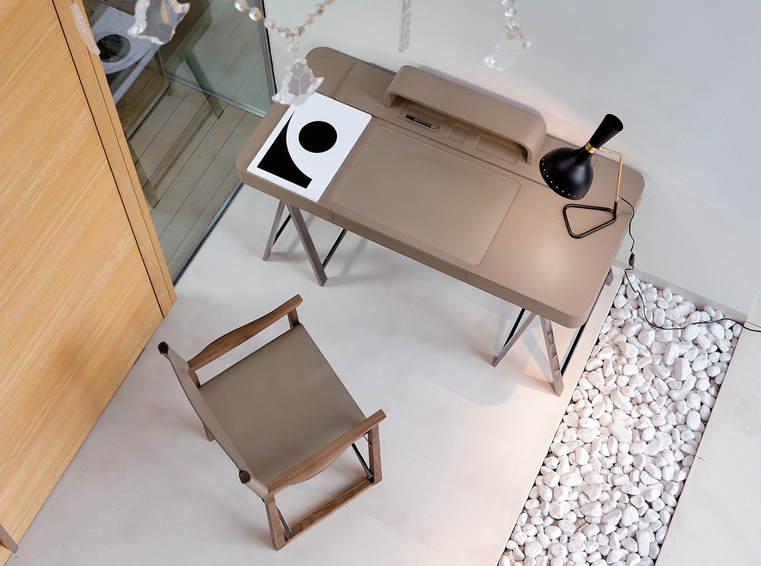 Предмет мебели, который определяет обстановку; элемент, который сочетает в себе интимность и ритуал; проект, рассказывающий о современной традиции дизайн-интерьера. Все это находит отражение в столе Napa Умберто Аснаго, который превращается в мобильный туалетный столик для макияжа. На легкой структуре, состоящей из двух опор, лежит тонкая столешница, которая создает пространство в горизонтальном плане. Изготовленный из шорно-седельной кожи, металла и стекла, Napa имеет ряд невидимых элементов и аксессуаров, такие как зеркало, которые превращают рабочее пространство во что-то более чувственное и интимное, в заботу о собственной персоне.