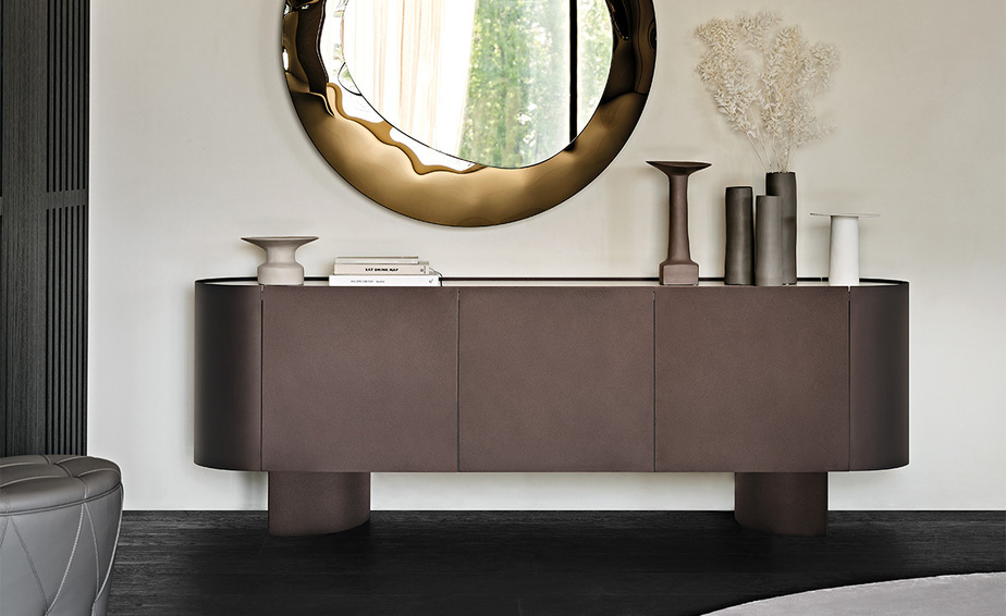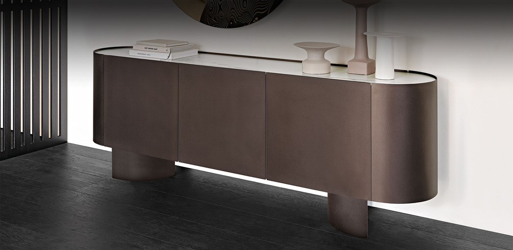 Джорджио Каттелан выбрал изысканную керамическую отделку Marmi для украшения верхней части модели Savoy , дизайнерского буфета , созданного его воображением.