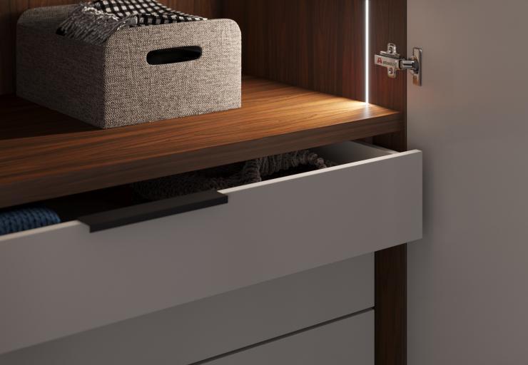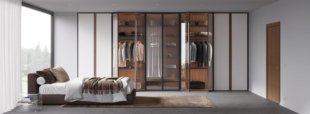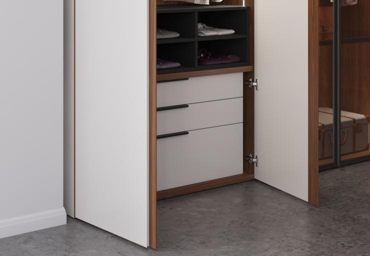 Абсолютная новинка от компании АТЛАС-ЛЮКС – программа платяных шкафов и гардеробных. Модульная система разработана с максимальной вариативностью: можно выбрать отдельно стоящий шкаф или набор из двух-трех, или обустроить полноценную гардеробную комнату. Модули могут быть без фасадов, с комбинированными, глухими и стеклянными дверями. Распашные шкафы отличаются современной эстетикой, продуманной до мелочей функциональностью и повышенным вниманием к деталям. Отличительной особенностью шкафов Миксал являются распашные двери MIXAL Glix со вставкой из тонированного стекла с легким зеркальным эффектом в окрашенном алюминиевом профиле и с утонченной ручкой позволяют заглянуть внутрь шкафа, создавая интригующий эффект. Так, шкаф становится уникальным предметом мебели, своего рода витриной, который с особой элегантностью может выступать как самостоятельный предмет мебели или в комбинации с закрытым шкафом, разбавляя строгость и монолитность его облика.