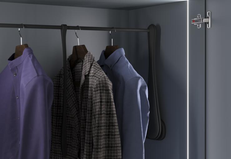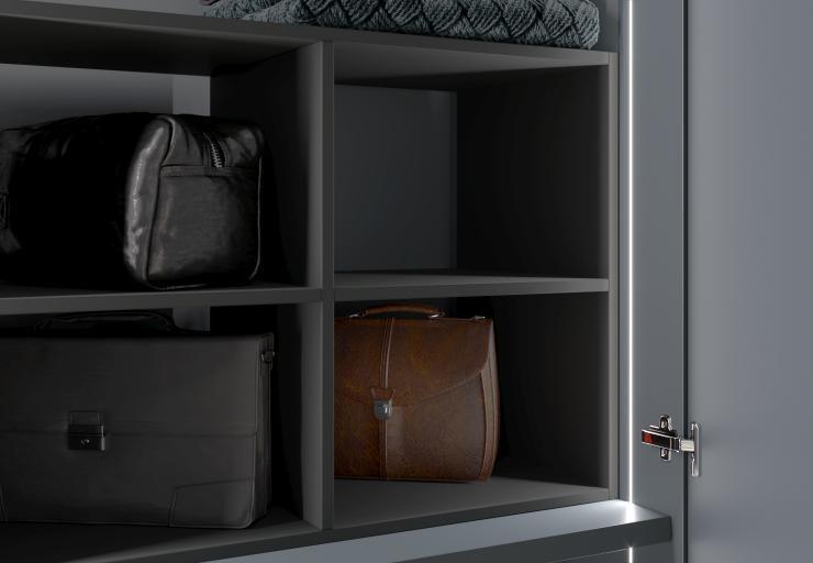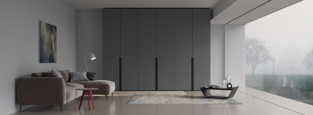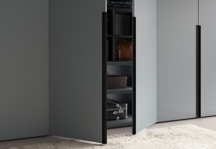 Абсолютная новинка от компании АТЛАС-ЛЮКС – программа платяных шкафов и гардеробных. Модульная система разработана с максимальной вариативностью: можно выбрать отдельно стоящий шкаф или набор из двух-трех, или обустроить полноценную гардеробную комнату. Модули могут быть без фасадов, с комбинированными, глухими и стеклянными дверями. Модель Солерно имеет лаконичный облик, который украшает нарядная и функциональная деталь – врезные металлические ручки, которые поднимаются вертикально до середины дверей. Так обычное приспособление для открывания становится характерным элементом оформления.