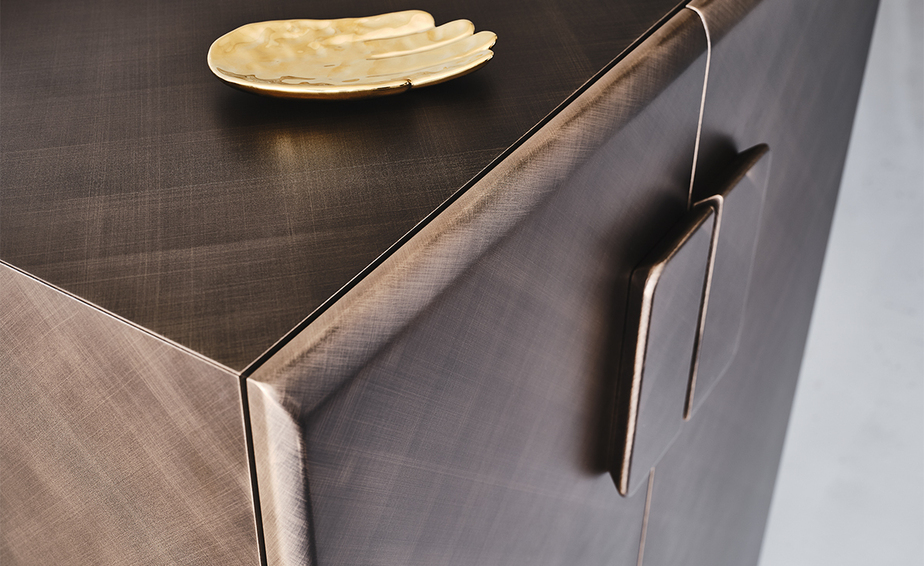 Каждая модель имеет свою отделку. Дизайн буфета Tudor с закругленными краями и широкой ручкой был задуман, чтобы подчеркнуть ручную отделку Brushed.