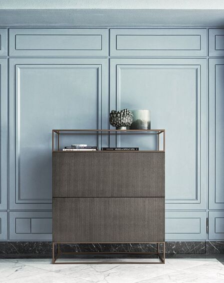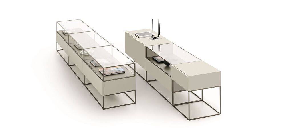 Unit представляет собой модульную систему хранения, чья эстетика выражается в чередовании пустых и заполненных модулей. С уверенностью можно сказать, что эта практичная, четкая и элегантная структура органично дополнит любое пространство. Стеклянные модули на металлическом основании создают гармоничные и гибкие в применении композиции.