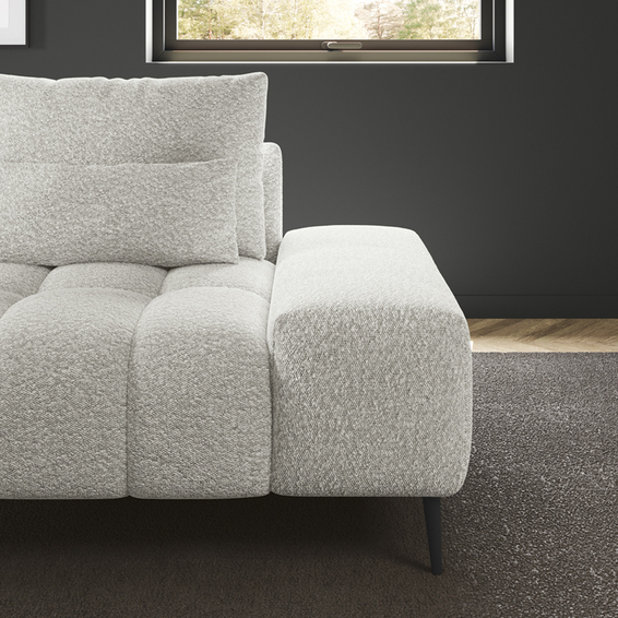 Прострочка дивана Midtown подчеркивает характер модели, создавая современный и модный визуальный эффект. Спинки, усиленные подушками, обеспечивают комфортную поддержку, а торцевые элементы завершаются на этреме без спинки, что придает дивану эстетическую легкость и большую свободу посадки. Полуостровной модуль представлен в виде удлиненной версии шезлонга, что позволяет использовать его индивидуально или предлагать интересные композиционные идеи. Дополнительные подушки для спины дополняют композицию, создавая еще более эргономичное и приятное сидение. Набивка: Набивка сиденья - полиуретан 35 кг/м3. Подушки спинки выполнены из вязкоэластичного пенопласта чешуйчатой структуры. Модульные боковины: данная модель имеет полностью готовые модульные боковины и позволяет установить изделие в центре комнаты как единый элемент.