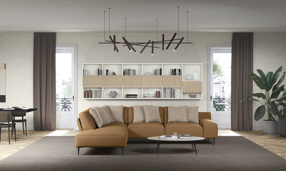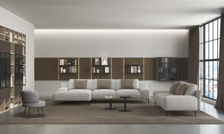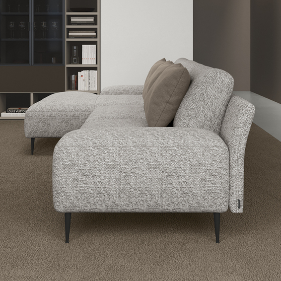Эклектичный диван, способный перехватывать несколько стильных целей. Тонкие, динамичные линии спинок также делают Ribera подходящей для использования в центре комнаты, создавая приятный визуальный эффект под любым углом. Строгость и рационализм линий контрастируют с удобством сидений, создавая гармоничный и завораживающий контраст. Модель приподнимается над землей благодаря настраиваемым ножкам из черного матового металла и хромированного металла. Возможность дополнить диван шезлонгом, подушкой-подголовником и отдельно стоящим пуфом, которые можно использовать рядом с другими модулями, повышает комфорт и расслабление. Набивка: Набивка сиденья выполнена из полиуретана 35 кг/м3 и вязкоэластичной пены 45 кг/м3. Подушки спинки выполнены из вязкоэластичного пенопласта чешуйчатой структуры. Модульные боковины: модель имеет готовые модульные боковины и позволяет установить изделие в центре комнаты как единый элемент.