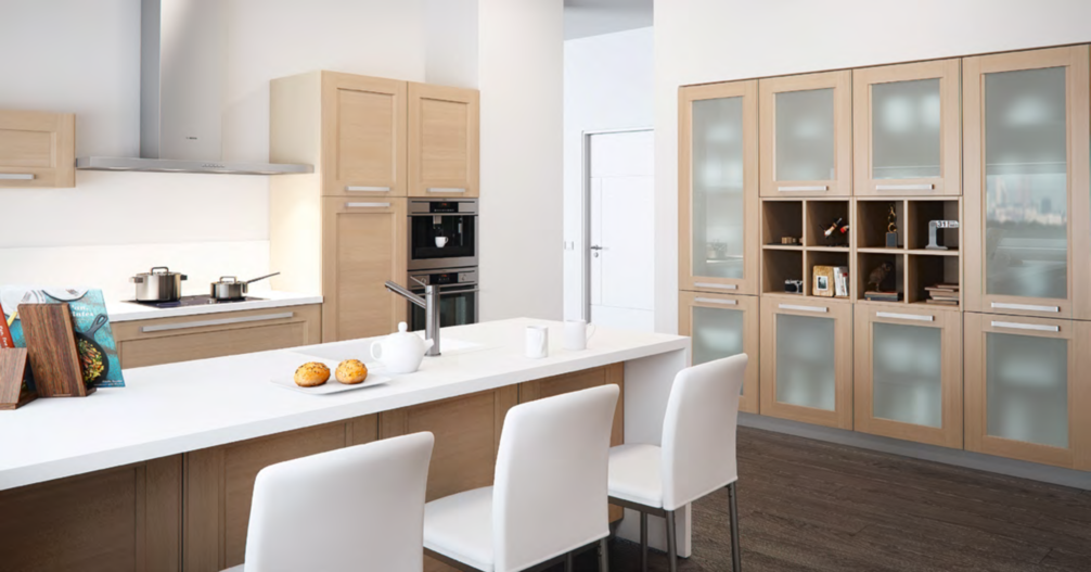 Ровные и натуральные оттенки строгого фасада из шпона дуба, эклектичные декоративные элементы из массива говорят о многогранности модели. Ее легко представить во многих стилях от неоклассики до боварского. Натуральные оттенки остаются актуальными и в современном пространстве.