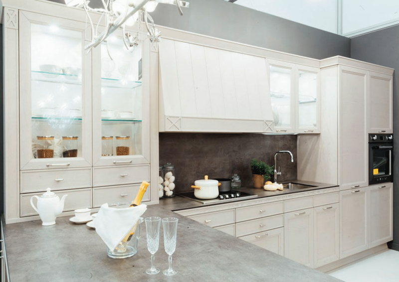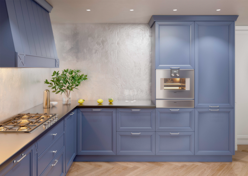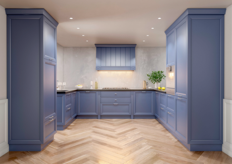 Кухня в стиле современная классика с рамочными фасадами из МДФ с матовой покраской