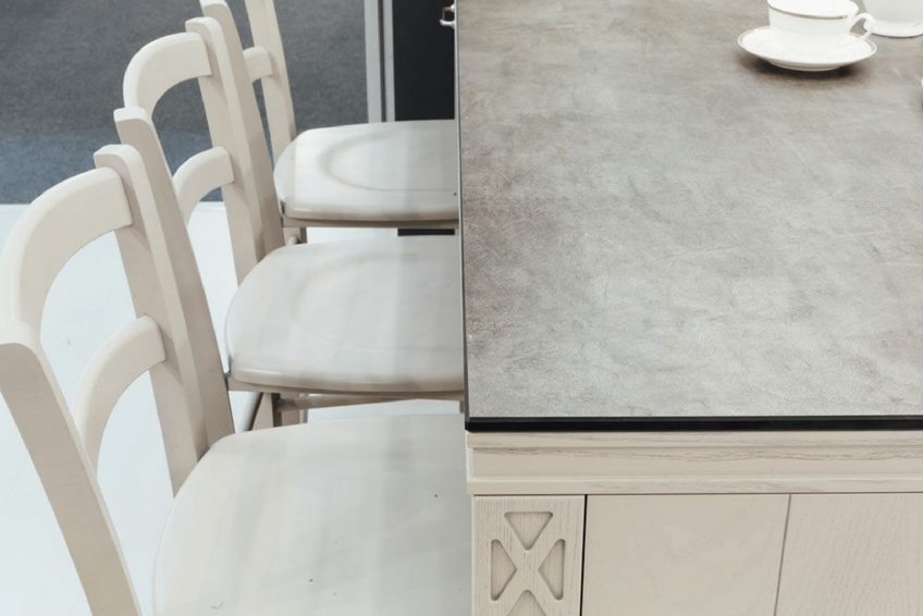 Кухня в стиле современная классика с рамочными фасадами из МДФ с матовой покраской. Гармонично подобранный декор элегантных вставок выгодно подчеркивает строгость и изысканность классических линий. Декоративные стеновые панели и оригинальные элементы позволяют оформить гостиную зону в едином стиле с кухней.
