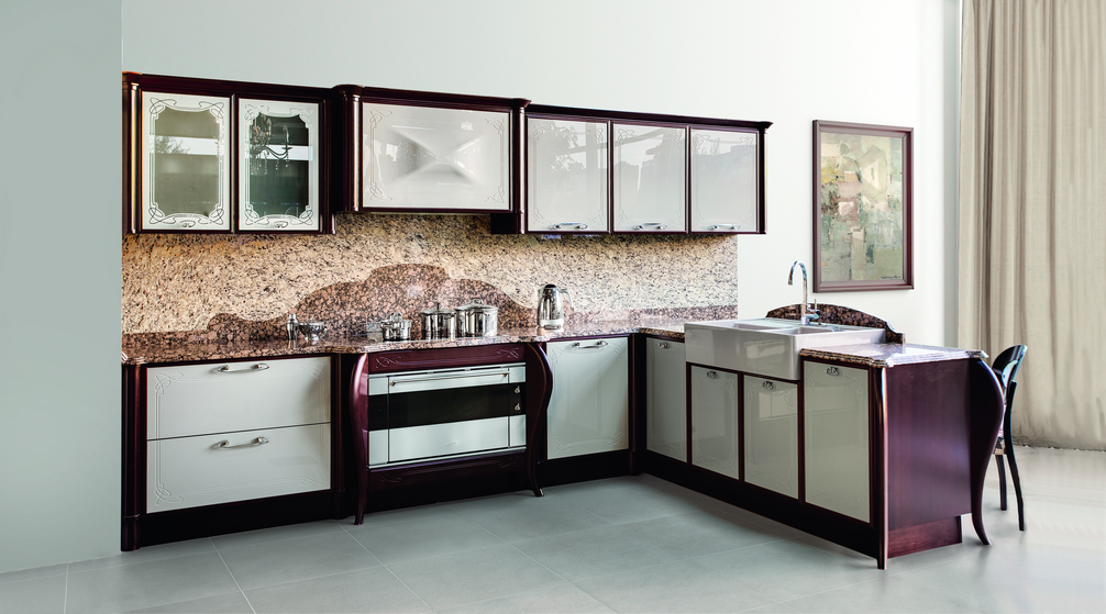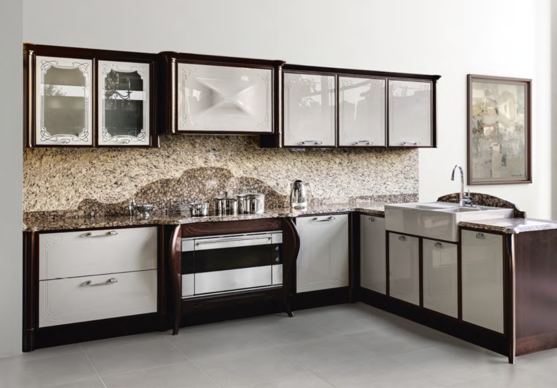 Визитная карточка из массива бука. Беатриче, с плавными линиями, мягкими округлыми формами и особой декоративной фрезеровкой, элегантна и уникальна в классической линейке кухонь Дриада.