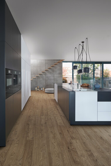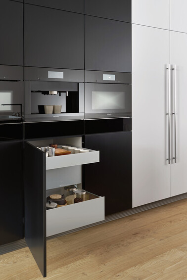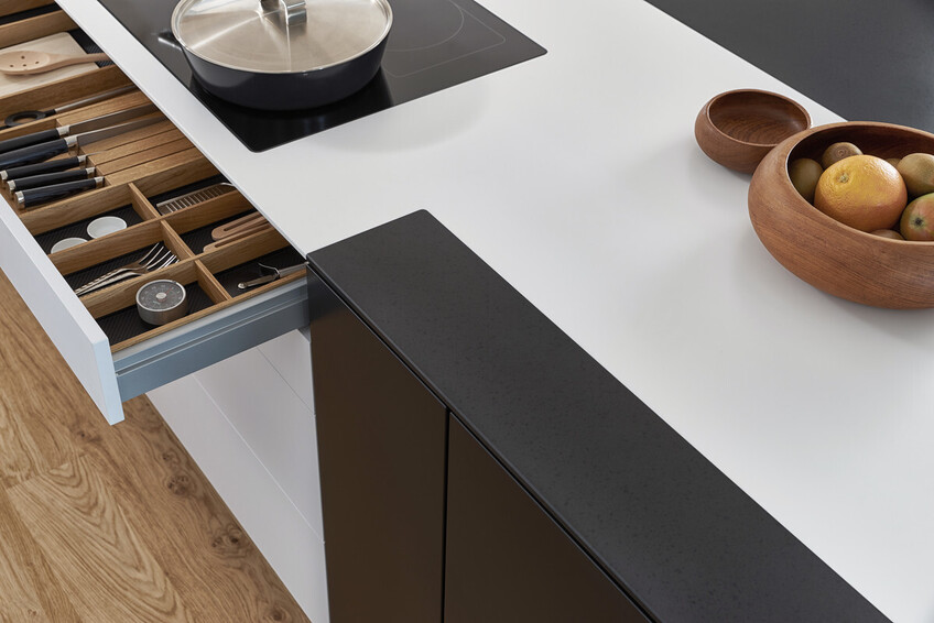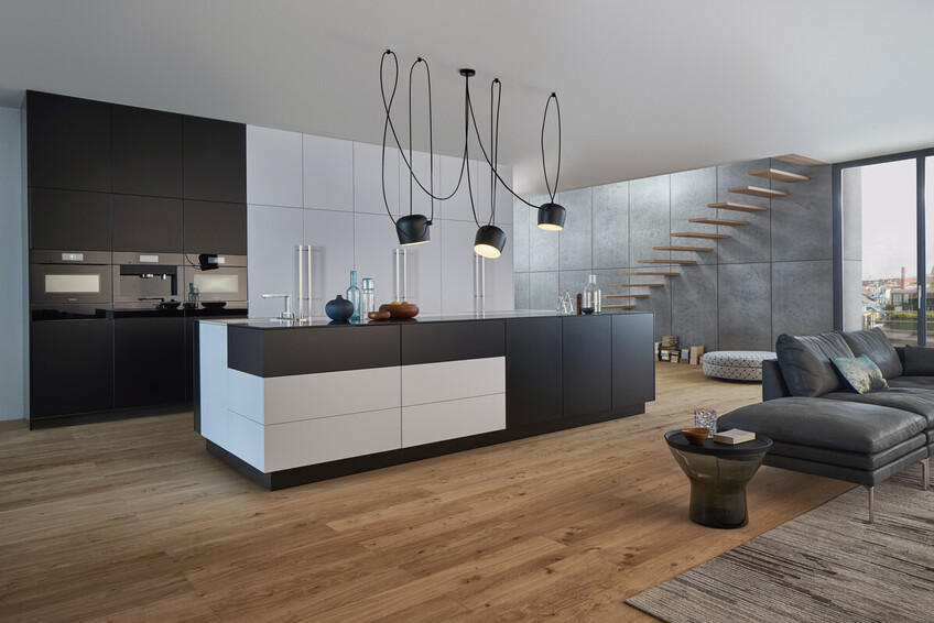 Классическое сочетание черного и белого являются отличительными чертами этого кухни. Белый цвет проходит через всю линию острова, выделяя функциональные зоны. Одной из характерных особенностей являются фронты из высококачественного матового лака, на которых не видны отпечатки пальцев. Элегантный BONDI выглядит единым целым, демонстрируя себя в деталях. Интегрированные в стену высокие шкафы скрывают обширное пространство для хранения, с множеством умных решений. На такой кухне всгда найдется место и для личных вещей, и предметов декора.