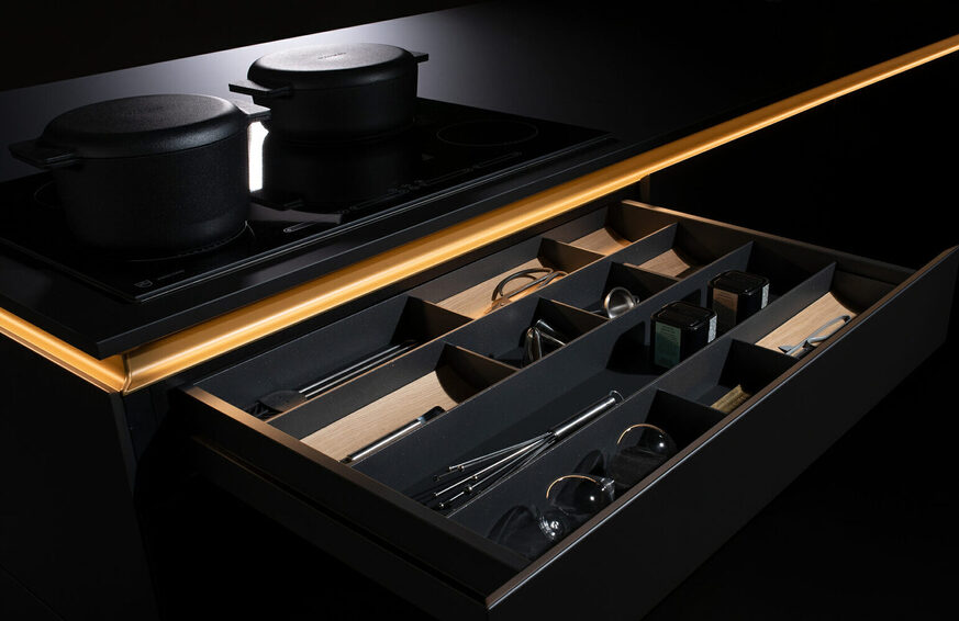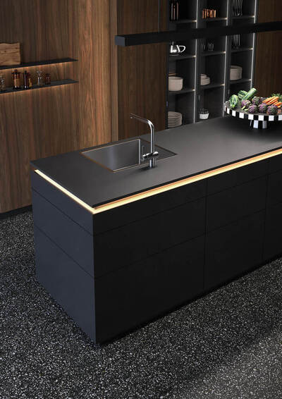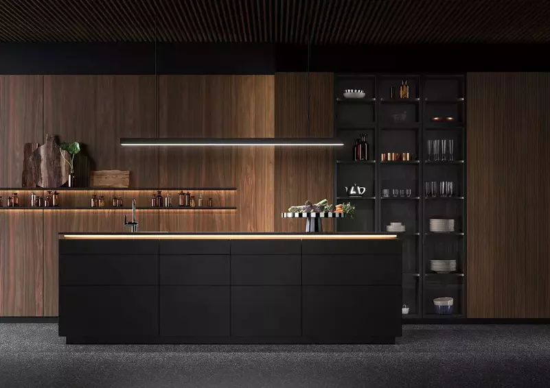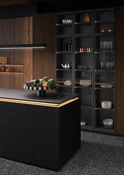 Данная концепция сконцентрирована на ультраматовом черном лаке CLASSIC-FS. Эта поразительно стильная поверхность внесет в интерьер непревзойденный минималистский шарм. В комбинации с программой BOSSA такое оформление приобретает особенную изысканность. Цвет CLASSIC-FS может быть любым.