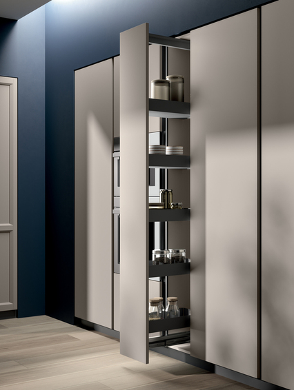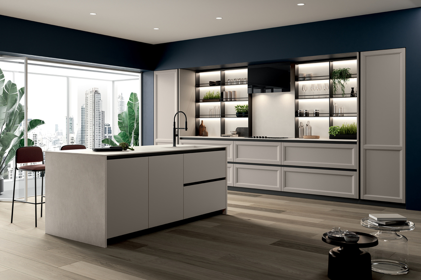 Композиция, расположенная между двумя высокими шкафами, согреваемая рамными дверцами и разнообразная канавкой антрацитового цвета, придает динамичность последней композиции линейки Class. Универсальное решение с шикарным и функциональным эффектом, подчеркивающее элегантную атмосферу квартиры в здании последнего поколения.