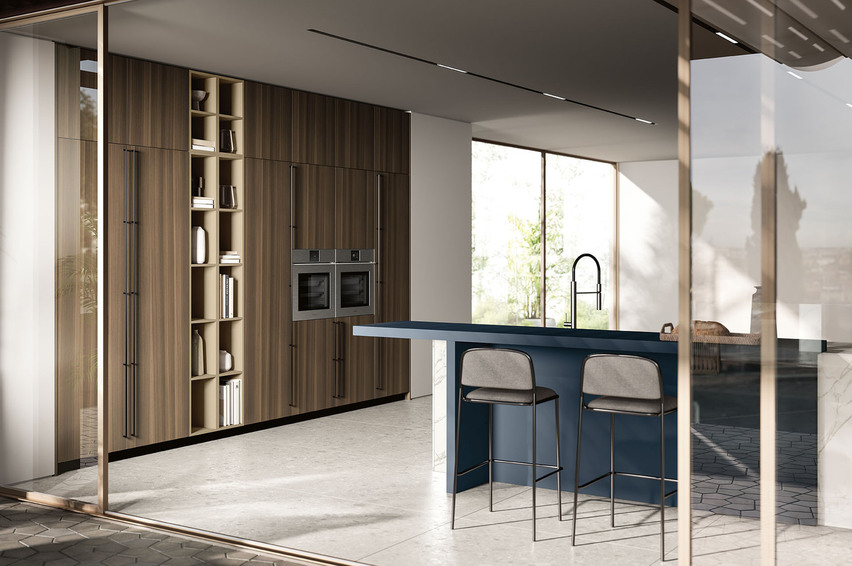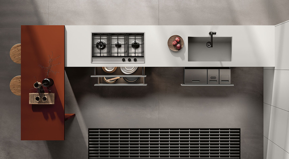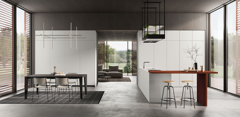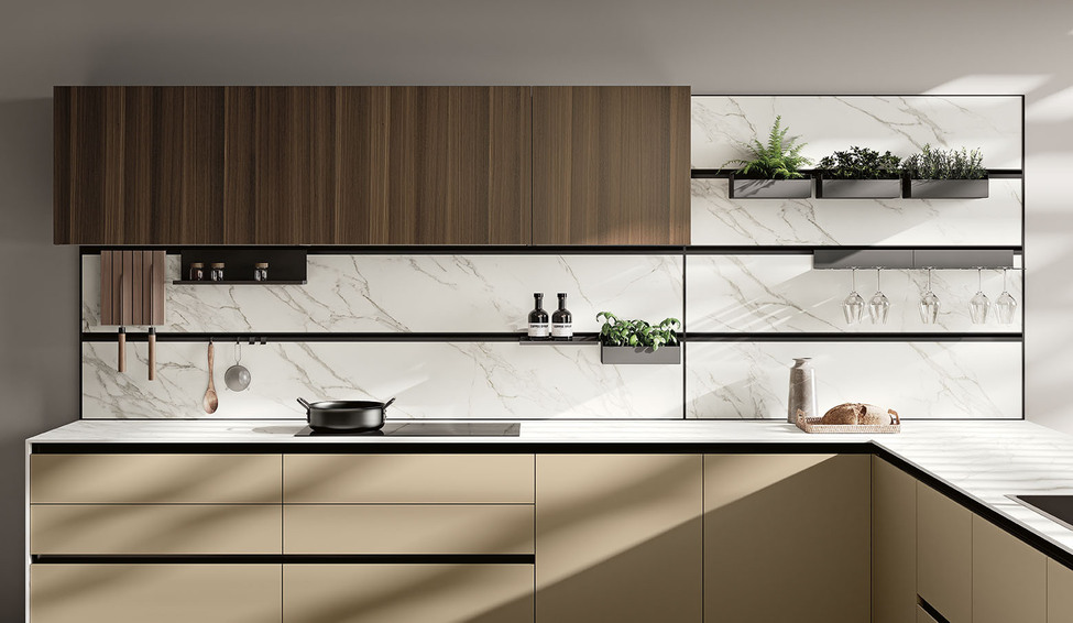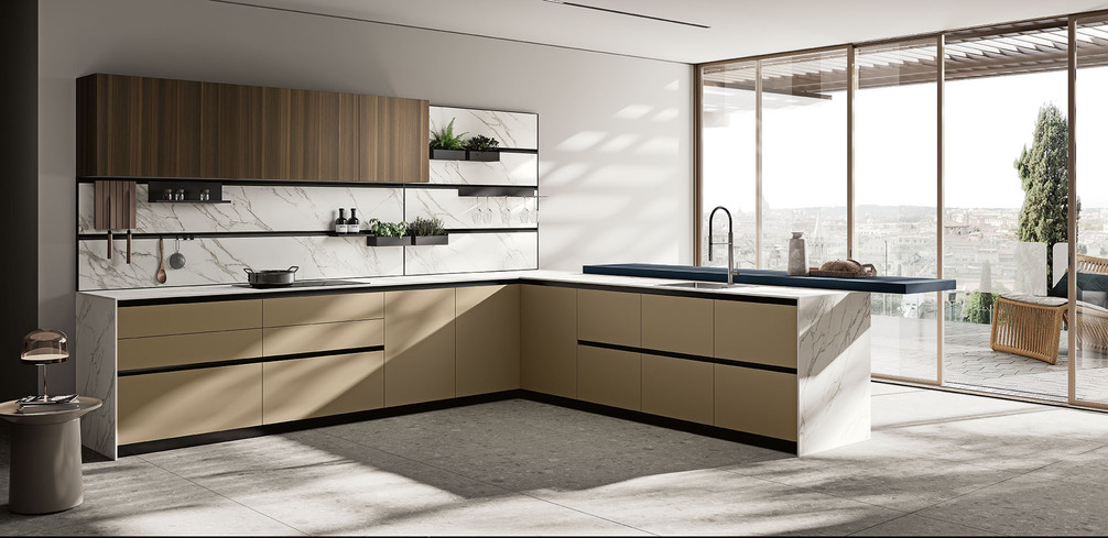 Дверь из L-профиля Origina облегчает захват с плоской или фигурной системой открывания пазов, обеспечивая превосходный функциональный и эстетический результат. L-образный профиль, вставленный во внутреннюю часть двери, придает эстетическую линейность кухонному пространству, создавая уникальные и рациональные композиции. Дверь из L-профиля Origina можно не только сконфигурировать с гладкой и текстурированной отделкой, представленной в ассортименте, но и с полностью настраиваемыми дверцами, пазами и цоколями всех цветов по шкале RAL, что обеспечивает максимальную уникальность. L-образный профиль выполнен с максимальным вниманием к деталям и представляет собой изысканное решение, отвечающее требованиям современной кухни. Она идеально сочетается с архитектурой двери, сохраняя при этом чистые, утонченные линии — символ минимализма и современности.