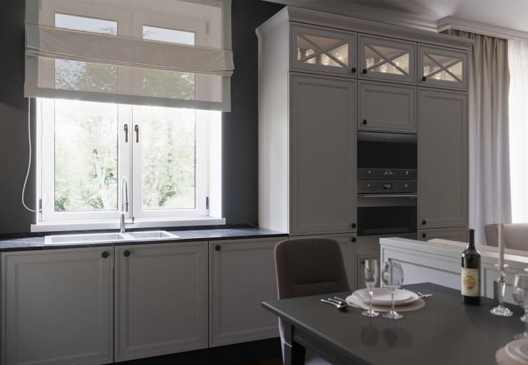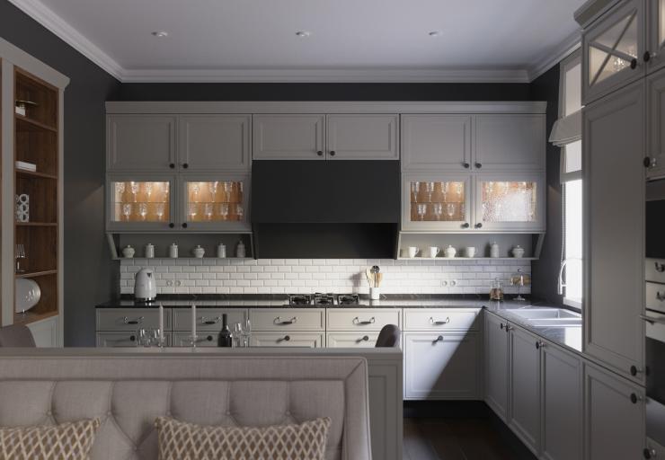 Ничего лишнего, никаких изысков. Только практичность и сдержанность. Так в функциональном дизайне рождается красота. Так рождается кухня «Честер». Безукоризненная простая геометрия фасадов и карнизов придаёт неизменное очарование вашему дому. Облик гарнитура с декоративными элементами, но без орнаментов и узоров, говорит как бы сам за себя. Стиль «шейкер» привносит в пространство концепцию точности и высокого качества. Здесь правит упорядоченное повторение — прямоугольные рамы и панели, простые деления на несколько секций, квадратичный профиль фасадов. Стекло разных видов на витринах — имитирующее слюду, узорчатое, матовое, бесцветное. Со вкусом подобранные ручки, в точности соответствующие общей стилистике модели. Небольшие, но эффективные детали добавляют кухне изящества. Шкафчики с чёткими линиями улучшают эргономику. Встроенная техника и выдвижные ящики создают чистый, упорядоченный вид.