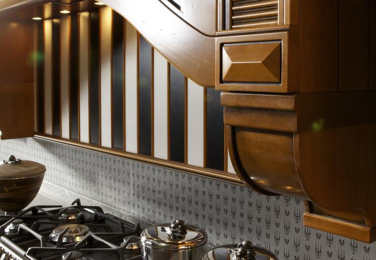 Изысканная кухня «Лео» оформлена в роскошном итальянском стиле, навевающем ассоциации с живописными пейзажами Средиземноморья. В дизайне этого гарнитура воедино слились аскетичные черты, свойственные древнеримской архитектуре, и богемная роскошь венецианского искусства. Модель «Лео» – яркая представительница классических кухонь, навевающая мечты о солнечных каникулах в Позитано, где современность переплетается с историзмом, а строгая элегантность с нетривиальностью декора. О такой мебели не мечтают, такую мебель не ищут и не ждут. Она не создает ажиотаж. Такую мебель ПРЕДПОЧИТАЮТ. Предпочитают… как изысканные вина, как дорогие сигары и роскошные яхты. Предпочитают среди всего богатства выбора те, кто может позволить себе все, что по вкусу, а не по статусу. Этимология названия очевидна. Крылатый Лев ныне, как и прежде, горделиво взирает на нас с гербов на ратушах и виллах севера Италии. Моделе Лео – попытка передать в интерьере настроение той великой эпохи невиданной роскоши и расцвета изящных искусств.