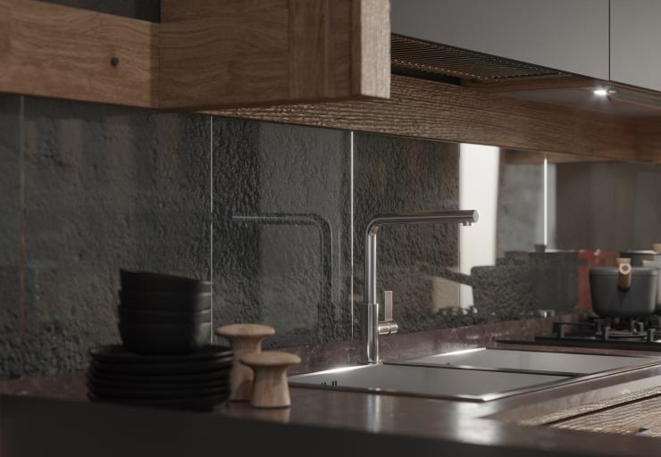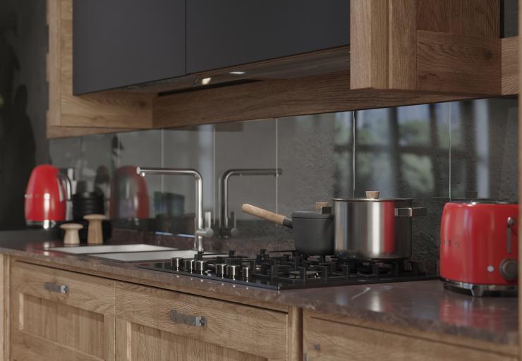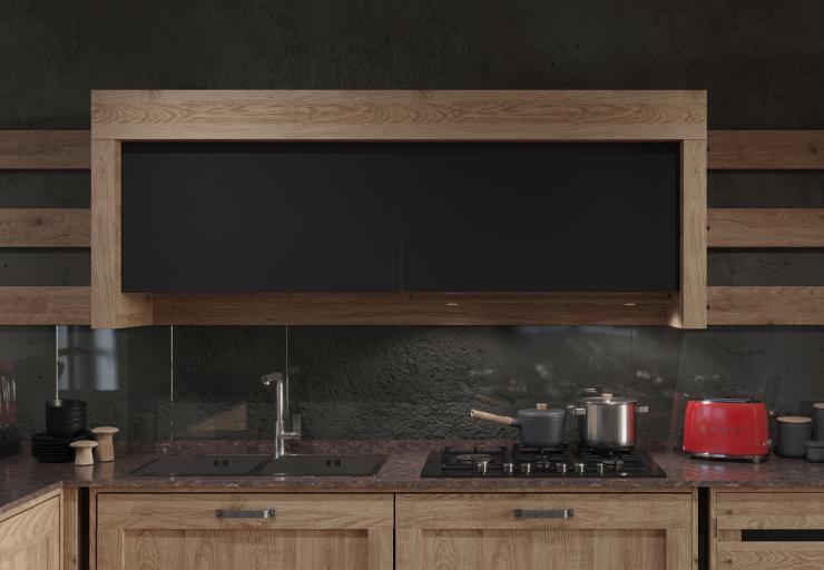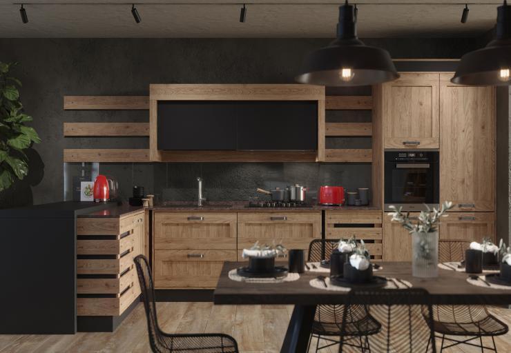 Стиль «Лофт» – это небрежная эстетика мегаполисов. В модели «Лофт» от фабрики «АТЛАС-ЛЮКС» уместно сочетаются все элементы, характеризующие этот стиль. Она вобрала в себя все детали, декоративные приемы и дизайнерские решения, все что свойственно лофтовой эстетике. Кухня «Лофт» соединила в себе все самое дерзкое и брутальное от свободы промышленных идей, наполнив эту модель очарованием старины. Современные фактуры – хром, стекло, сталь, соседствуют со старыми урбанистическими предметами – необработанный бетон, кирпичная кладка, дерево. Эпатажный декор сквозит в каждой детали. Выдвижные ящики без ручек стилизованы под сбитые доски. Под одной из рабочих зон прячется полка для бутылок. Так, ни в одном элементе не нарушается баланс функциональности и красоты. Брутальность композиции придают металлические фальш-болты и петли. Кухня «Лофт» заметна объемными фасадами с рамками. В интерьер добавлены открытые полки с подсветкой, куда так и хочется поставить баночки с конфетами, крупами и специями. В пространстве появляются необычные грифельные доски – на таких ещё в прошлом веке писали самые лучшие рецепты в кафе – модное решение сегодняшнего дня.