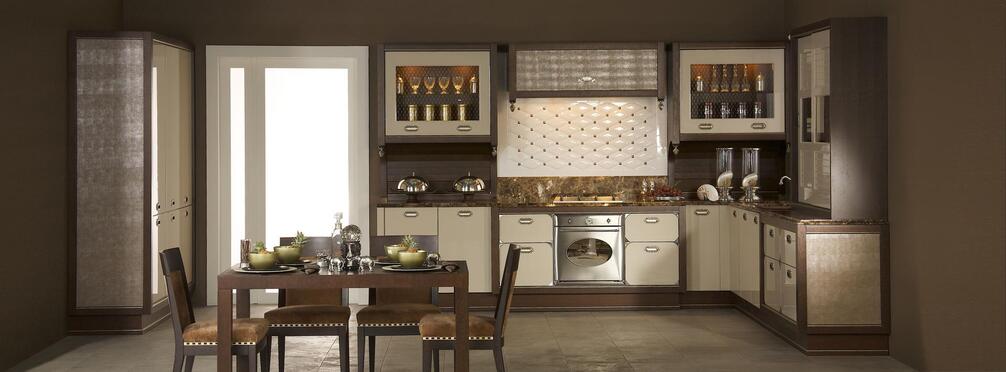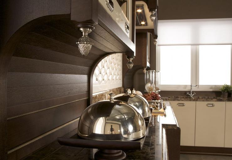 Доказательством импозантности современного стиля в интерьере служит гарнитур для элитных кухонь «Велиеро». Это вариант классических кухонь – сочетание комфорта, функциональности, легкости и надежности. «Парусник», именно так переводится с итальянского языка название комплекта кухонной мебели. И действительно, внешне гарнитур абсолютно соответствует названию. Благородные формы, изящество, стремящийся к полету силуэт, явные признаки аристократичного характера. Мастерам удалось воплотить в гарнитуре традиционные удобства в совокупности со смелостью модерна. К отличительным чертам проекта относится четкость геометрических форм, строгость линий, роскошь отделки. Акцент мебельной презентабельности – наличие авторского литого шильдика. Гарнитур для современной просторной кухни «Велиеро» получился не только очень красивым, но и безукоризненно функциональным. Он подчеркивает изысканность интерьера кухонного пространства и его элитность.