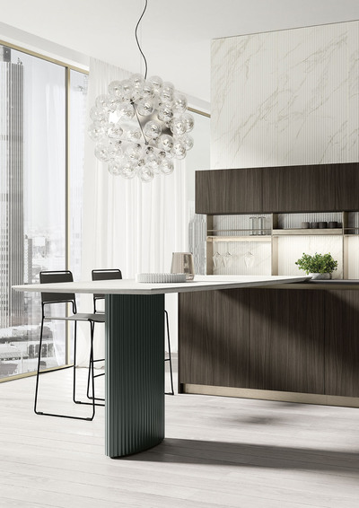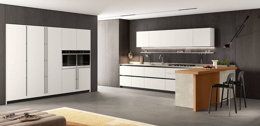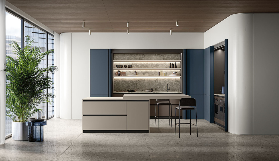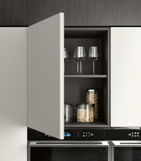 Квадратная дверь с ручкой или фигурным пазом идеально объединяет кухню и гостиную, создавая уникальные, многофункциональные пространства. Характерная дверь с линейным профилем создает пространство чистого эстетического удовольствия, где каждая деталь продумана до мелочей, чтобы обеспечить максимальную эффективность. Возможность выбора между стандартной и избыточной модульностью позволяет максимально адаптировать пространство, гарантируя эргономичность и функциональность самой уютной комнаты в доме.