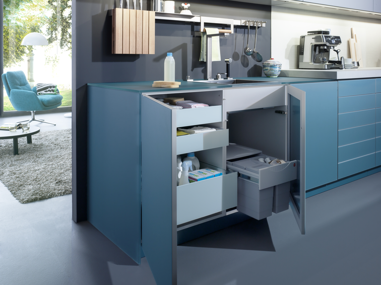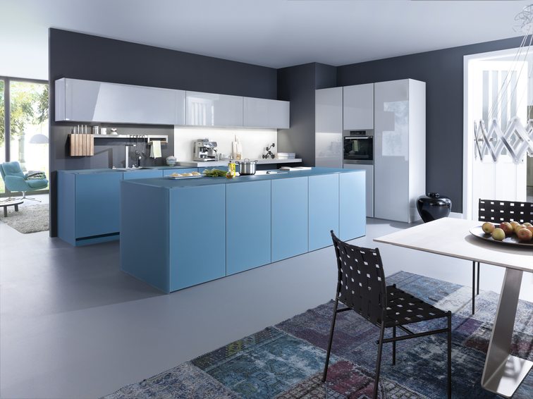 Кухонный гарнитур в современном стиле. Фасады нижних шкафов из программы IOS-M выполнены из стекла. При отделке могут использоваться новые цвета: куркума (горчично-желтый), шафран (матовый оранжевый), петрол (сине-зеленый), которые были впервые показаны на выставке Eurocucina. Столешница из стекла толщиной 12 мм. Ящики и дверцы оснащены механизмом открытия от нажатия. Гарнитур можно оборудовать блоком для подключения iPhone, усилителем и колонками. Новинка-2012. Была представлена на апрельской выставке Eurocucina, которая проходит в рамках i Saloni Milano в Милане (Италия).