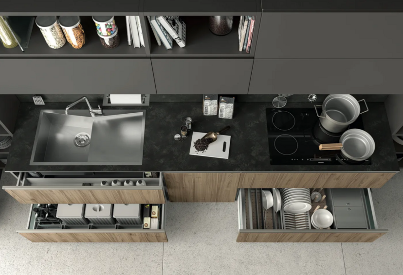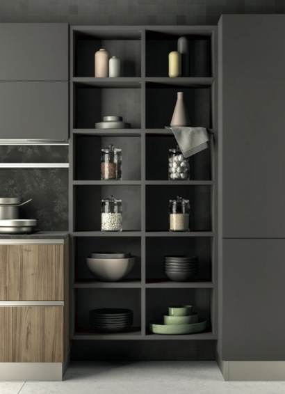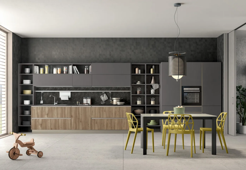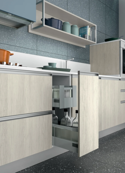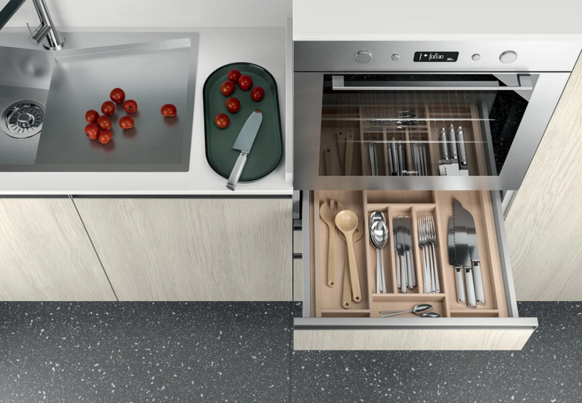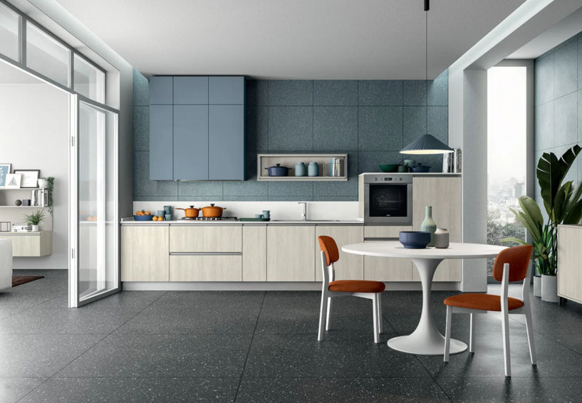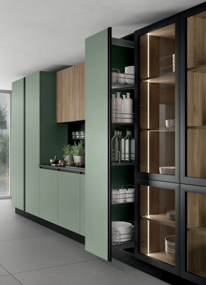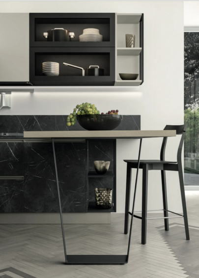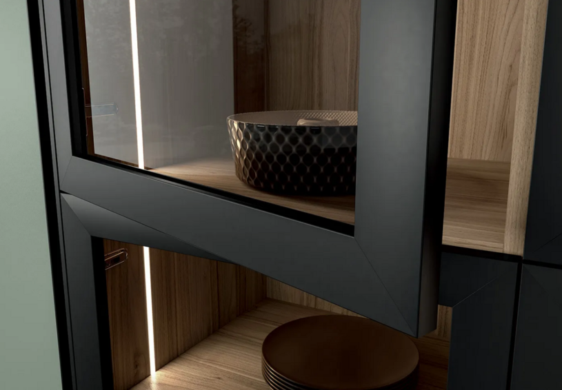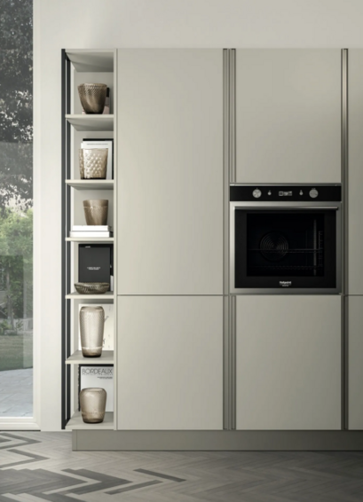 Лаконичная элегантная кухня. Силуэт мебели имеет четкие ровные геометрические формы. Особую неповторимую оригинальность ей придает специфическое профилирование фасадов. Линейность дизайна кухни подчеркнута отсутствием ручек, которые встроены в фасад. Сolombini casa преобразила кухню, сделав ее незаурядной и практичной одновременно