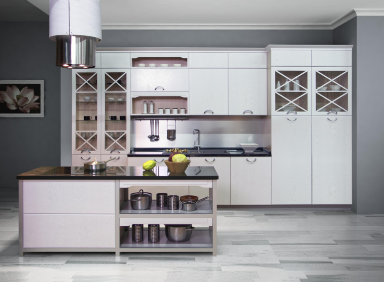 В дизайне обновленной модели MARCIA чувствуется влияние североевропейского, скандинавского стиля, к которому вновь все чаще обращается мебельная мода. Здесь и очень простые и технологичные фасады, и чистые светлые цвета, и узнаваемое перекрестие на стеклянных дверях. Очень лаконичный легкий декор — планки, накладки.Эта модель представляет собой модернизированную классику и прекрасно подходит для любых интерьеров, как классических, так и современных.