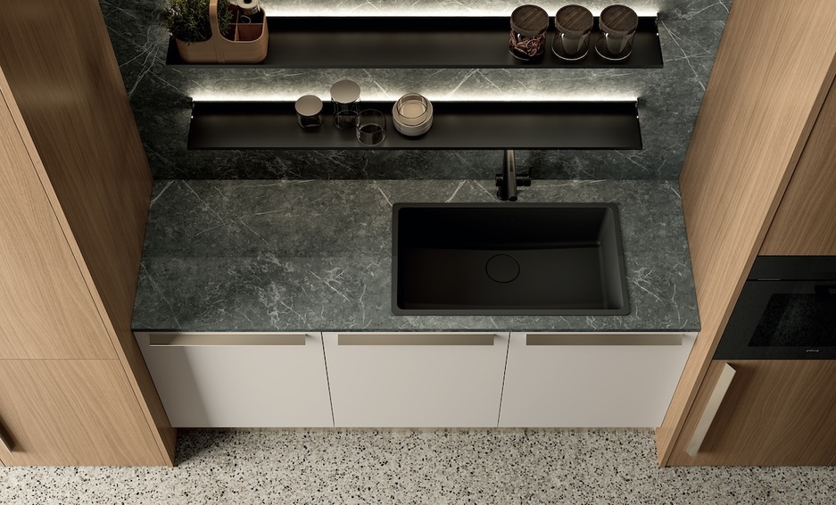 Modula anta square доступен с ручкой или с контурным горлом, чтобы воплотить в жизнь решения с чистыми линиями и изысканной эстетикой. Возможность выбора между стандартной и над модульностью позволяет максимально персонализировать окружающую среду для обеспечения эргономики и функциональности в самом важном пространстве дома.
