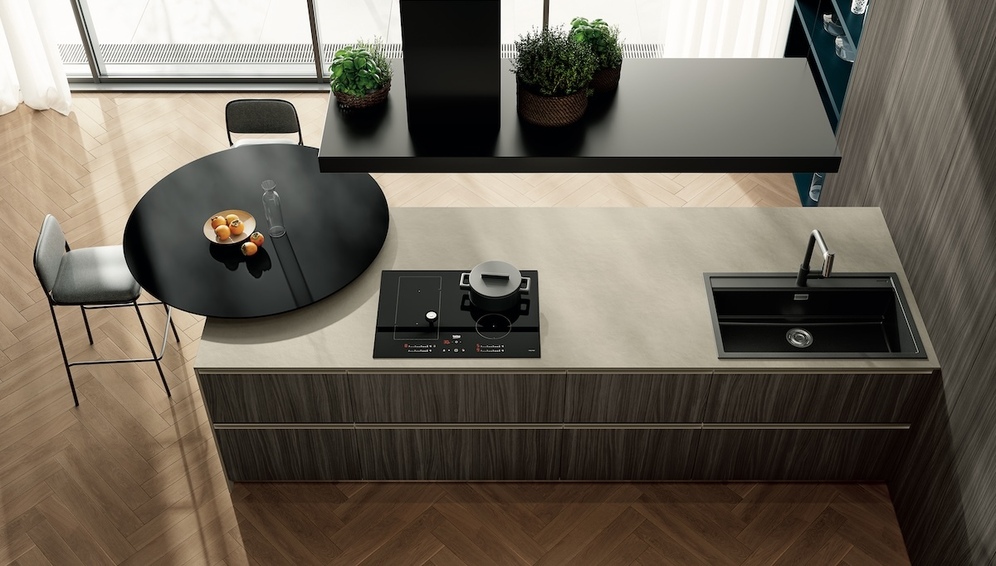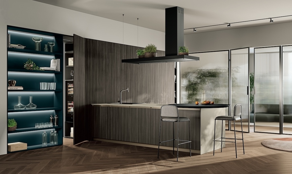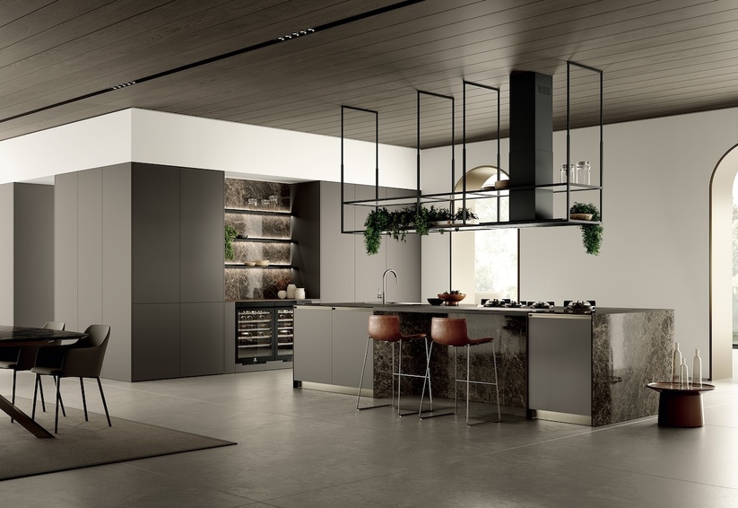 Modula profile C — это элегантность и минимализм, дополненные изысканной отделкой и аксессуарами, призванными сделать его уникальным. Стиль, который может быть представлен в бесконечном количестве композиций, разработанный и созданный по индивидуальному заказу для тех, кто живет им. Кухня, которая не просто является кухней, а становится звездой всего помещения, которое она занимает. Современный и актуальный, он характеризуется открыванием дверей с помощью ручки вверху, восстанавливая минималистский стиль моделей с пазами.