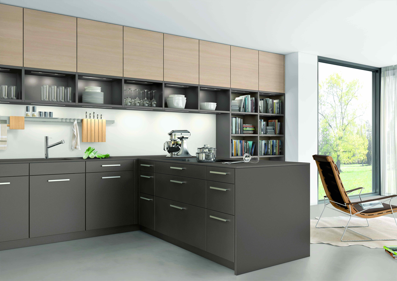 кухня ORLANDO интересна еще и своей эргономикой – полки с панельной задней стенкой и безручечные шкафы легко достать из обеденной зоны.