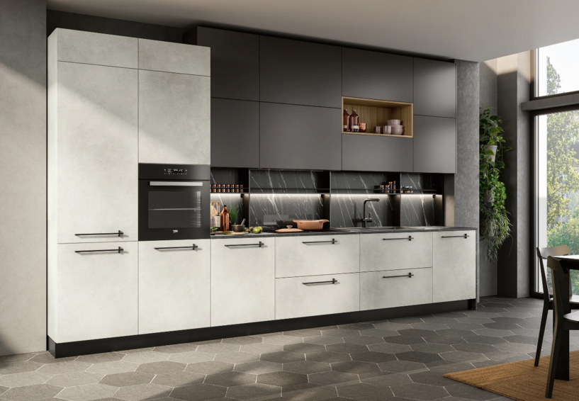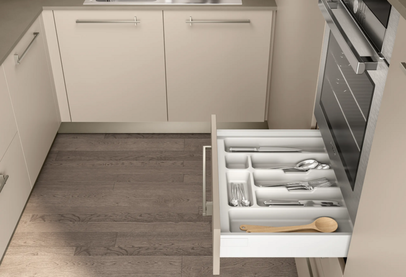 Яркая, свежая, практичная кухня. Совершенно не теряет яркость цвета, устойчива к влаге, высокой температуре, свету, неприхотлива в уходе. Множество тщательно продуманных деталей, типов и размеров выдвижных ящичков и корзин делают эту модель чрезвычайно функциональной и эргономичной.