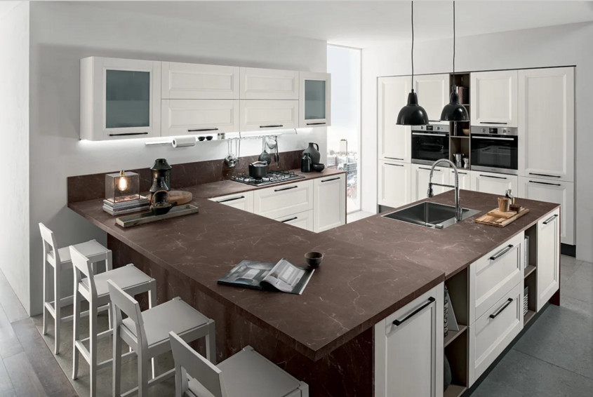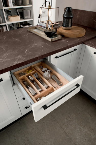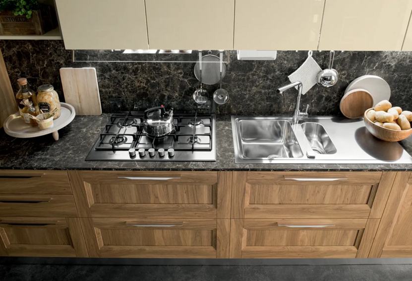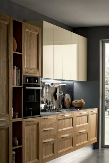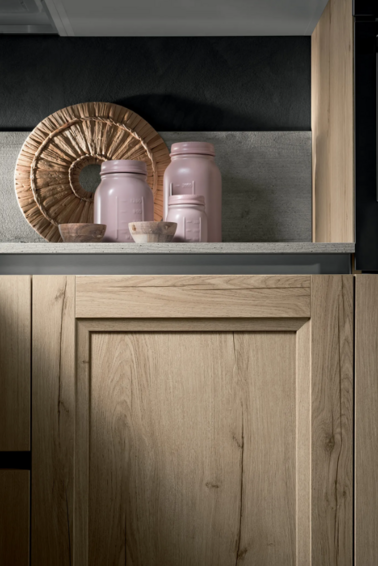Кухня способная идеально подчеркнуть характеристики любого помещения. Отделки являются основополагающими характеристиками облика этой кухни. Характерный фасад с рамой, благодаря эффекту дерева в отделках, создает естественную домашнюю обстановку. Классический фасад с рамой, с встроенной ручкой гола раскрывает концепцию современности в данной модели. Riviera может быть как современной, так и романтической. С этой кухней вы можете создавать разные стили.